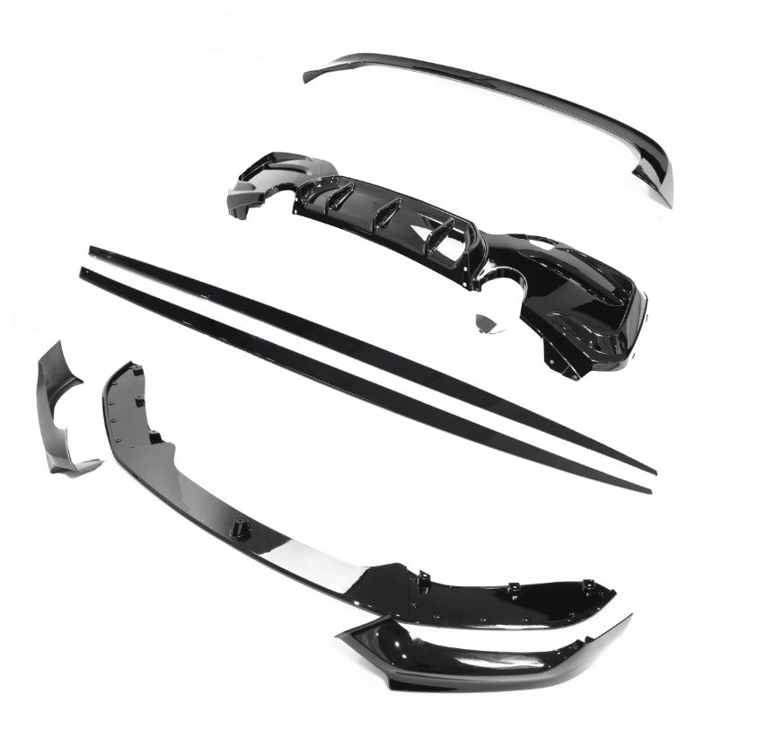 Gloss Black Front Splitter, Side Skirts, Rear Diffuser, Lip Spoiler.